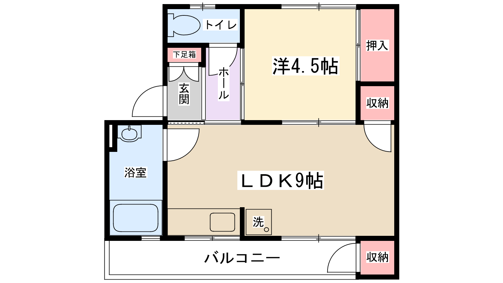 | 間取り内訳 | LDK9帖・洋室4.5帖 | 駐車場 | なし | ||||