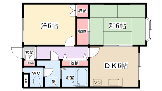 | 間取り内訳 | 洋室6帖・和室6帖・DK6帖 | 駐車場 | なし | ||||