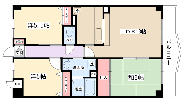 | 間取り | 3LDK | 専有面積 | 63.36㎡ | 構造 | RC | 築年数 | 平成8年3月 |