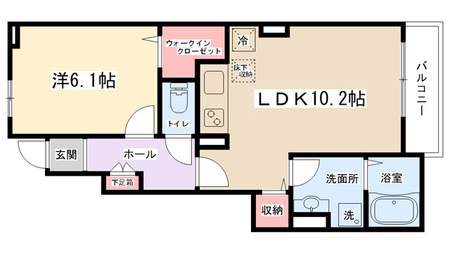 | 間取り内訳 | LDK10.2帖・洋室6.1帖 | 駐車場 | 敷地内あり 7,700円 | ||||