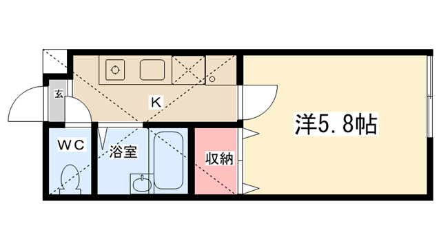 | 間取り内訳 | 洋室5.8帖・K1.5帖 | 駐車場 | なし | ||||