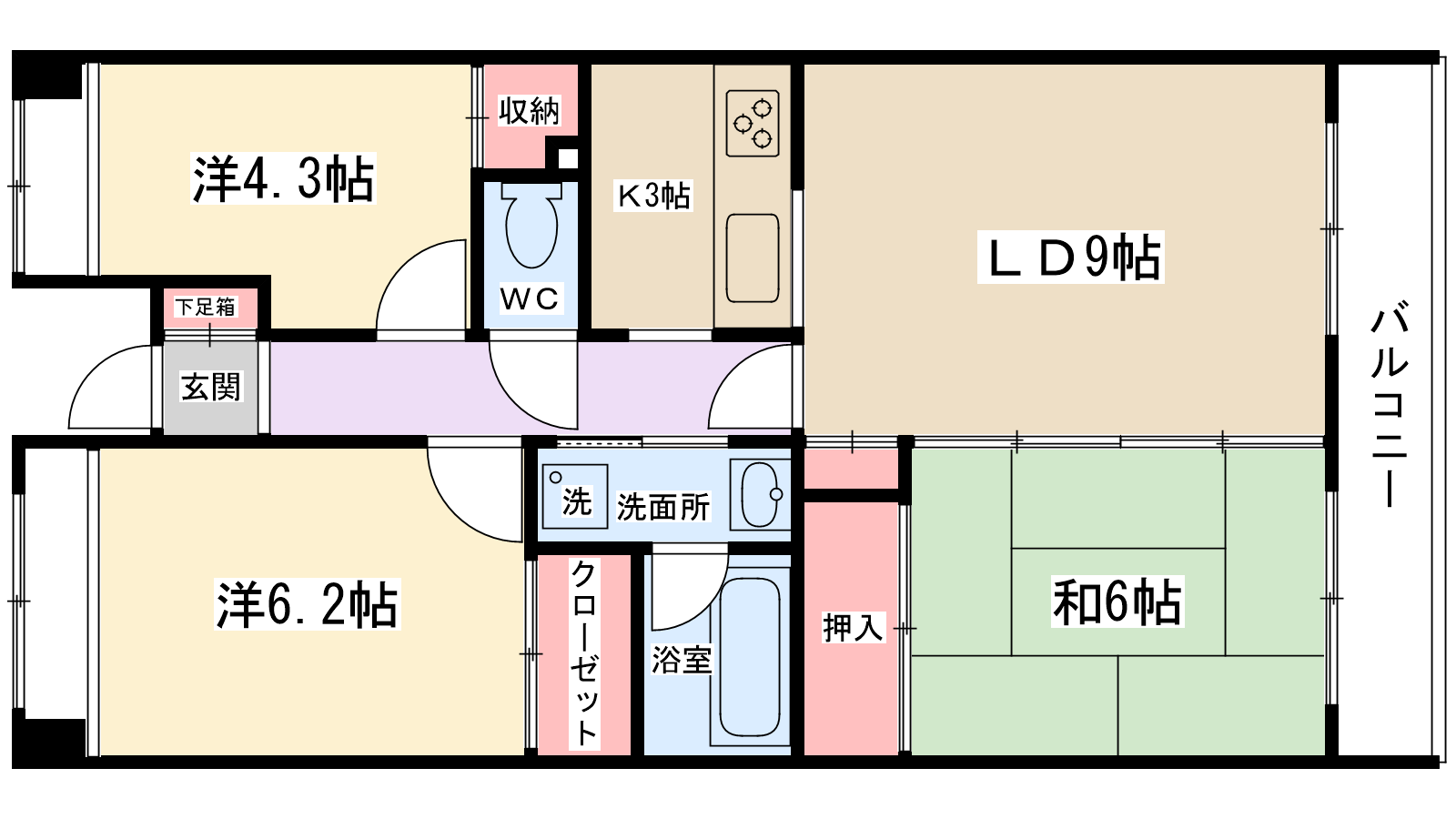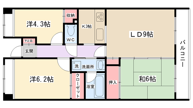 | 間取り内訳 | LDK12帖・洋室6.2帖・洋室4.3帖・和室6帖 | 駐車場 | 敷地内あり 9,000円 | ||||