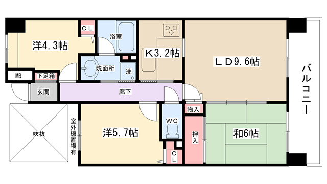 | 間取り内訳 | LDK12.8帖・洋室5.7帖・洋室4.3帖・和室6帖 | 駐車場 | 敷地内あり 7,550円 | ||||