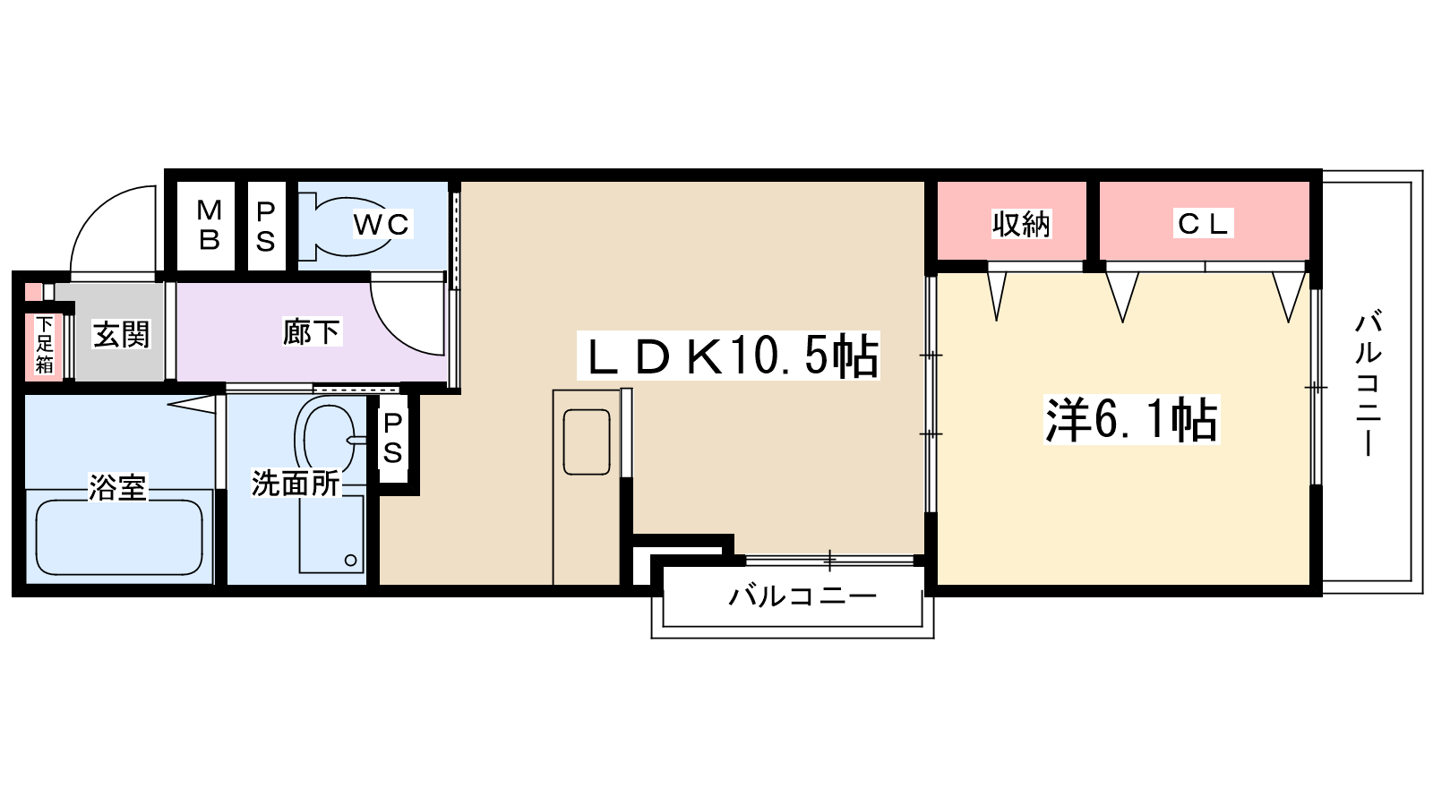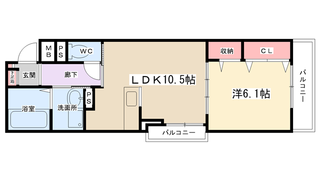 | 間取り内訳 | LDK10.5帖・洋室6.1帖 | 駐車場 | 敷地内あり 8,800円 | ||||