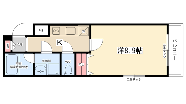 | 間取り | 1K | 専有面積 | 28.12㎡ | 構造 | RC | 築年数 | 平成19年2月 |
