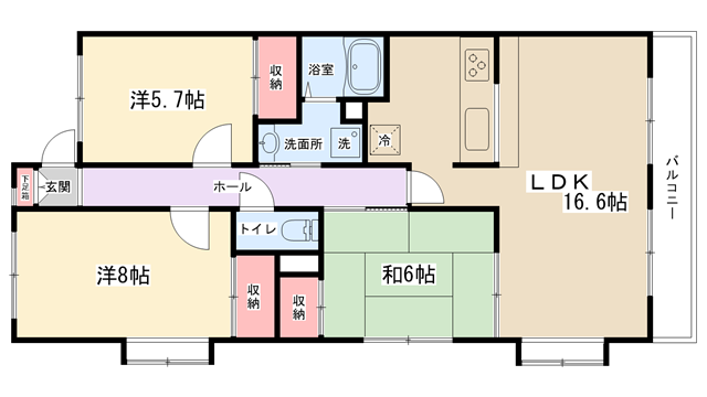 | 間取り内訳 | LDK16.6帖・洋室8帖・和室6帖・洋室5.7帖 | 駐車場 | 敷地内あり 11,000円 | ||||