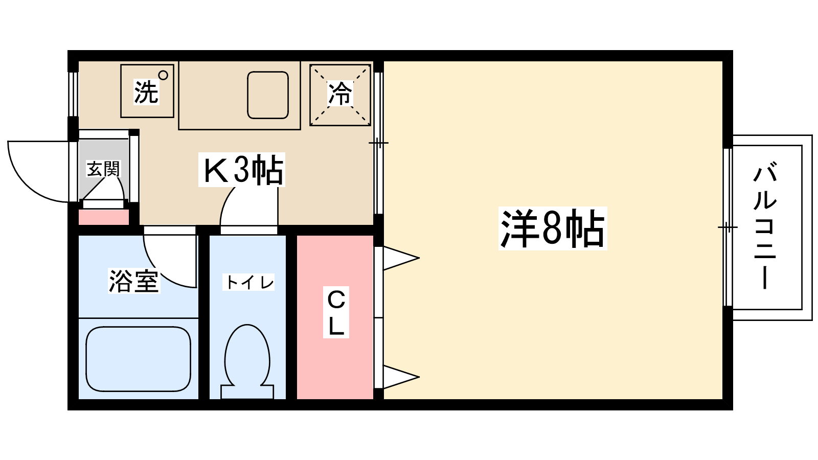 | 間取り内訳 | 洋室8帖・K3帖 | 駐車場 | 近隣あり 7,200円 | ||||
