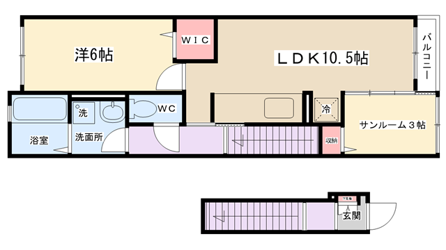 | 間取り内訳 | 洋室6帖・LDK10.5帖 | 駐車場 | 敷地内あり 8,800円 | ||||