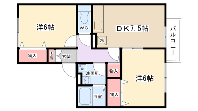 | 間取り内訳 | DK7.5帖・洋室6帖・洋室6帖 | 駐車場 | 敷地内あり 6,600円 | ||||