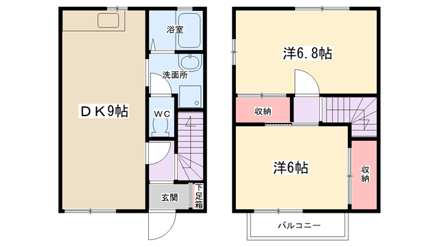| 間取り内訳 | DK9帖・洋室6.8帖・洋室6帖 | 駐車場 | 敷地内あり(1台分付き) | ||||
