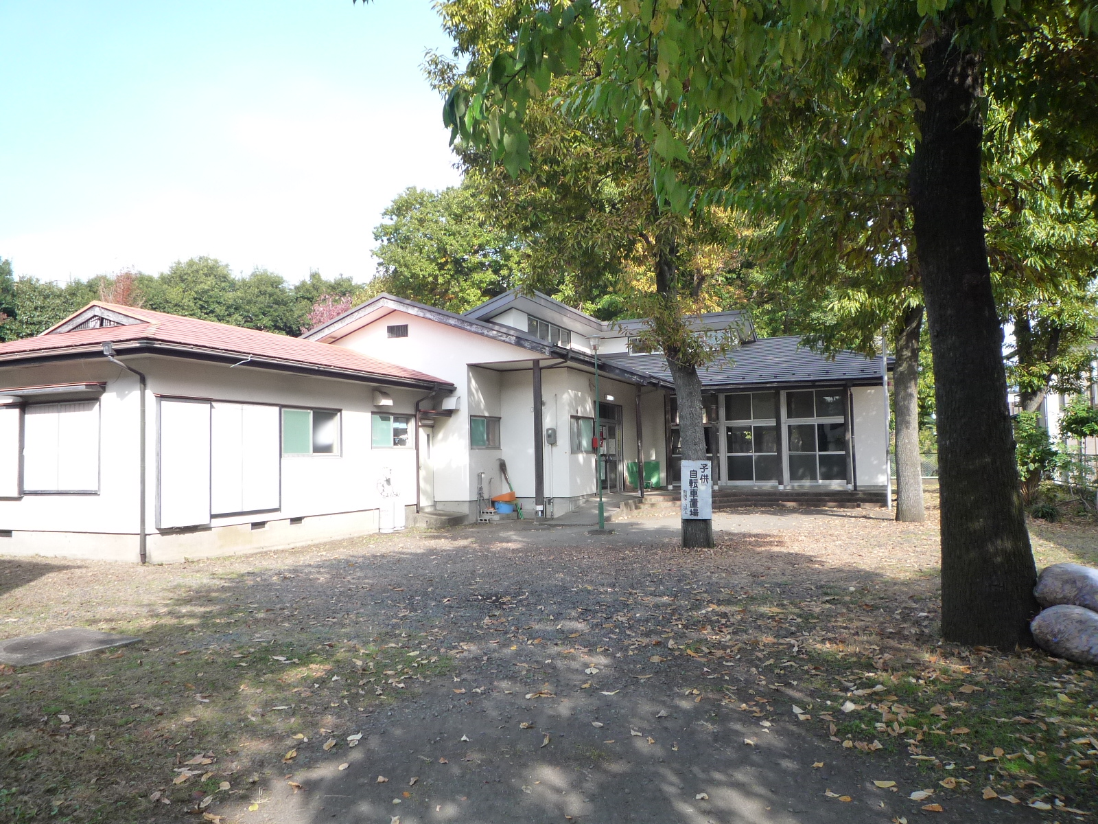 旧道沿いに面した立地です。児童館は道路からちょっと奥の方にあります。