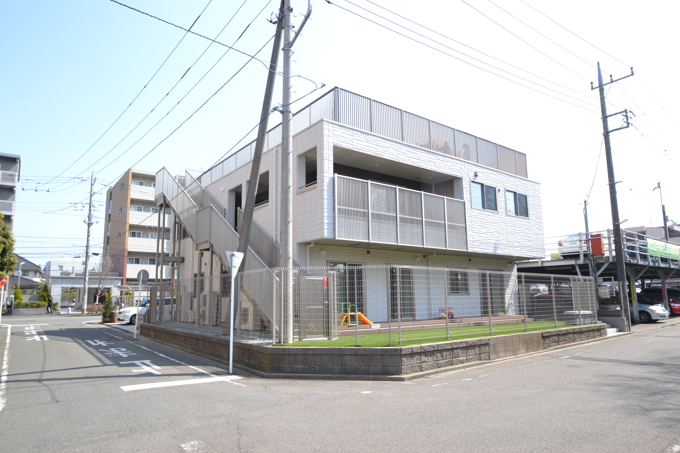 当社で相模原市への申請業務から携わった認可保育園です。駅に近いため、敷地面積は広くはありませんが、園庭が屋上にあり、目の前にも公園がありますので、子供達が元気よく遊べると思います。