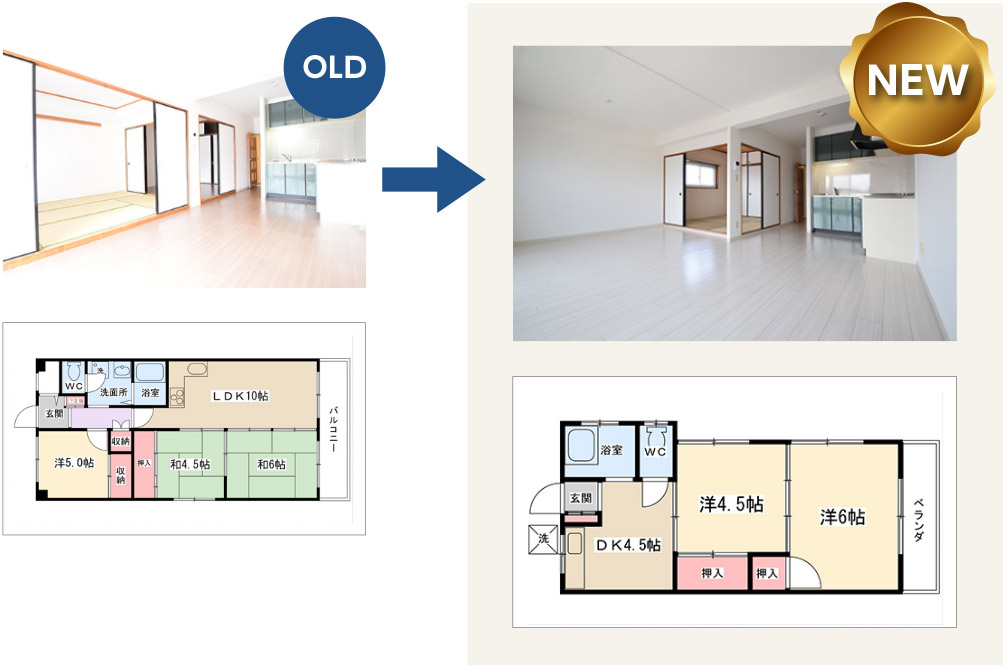3DKから2LDKへ、2DKから1LDKへの変更により、