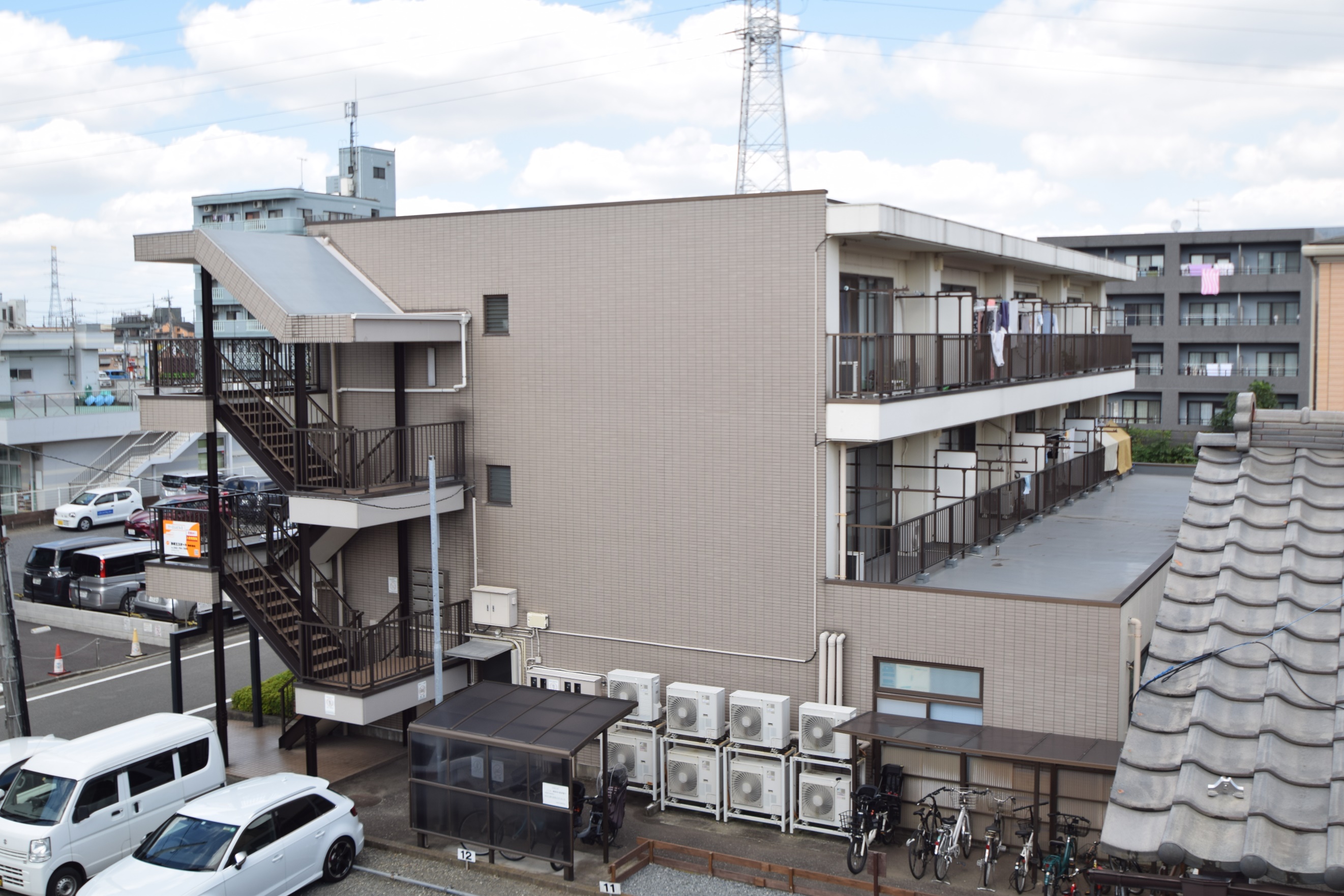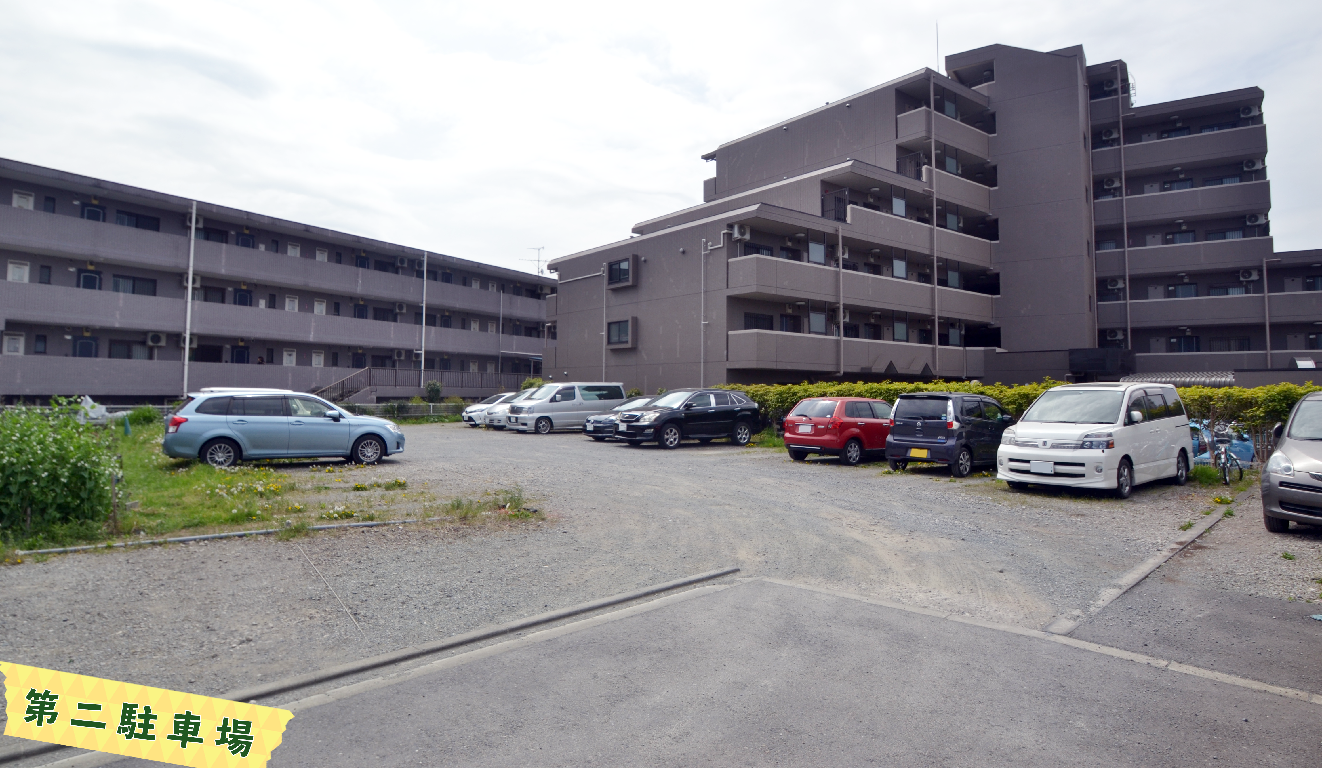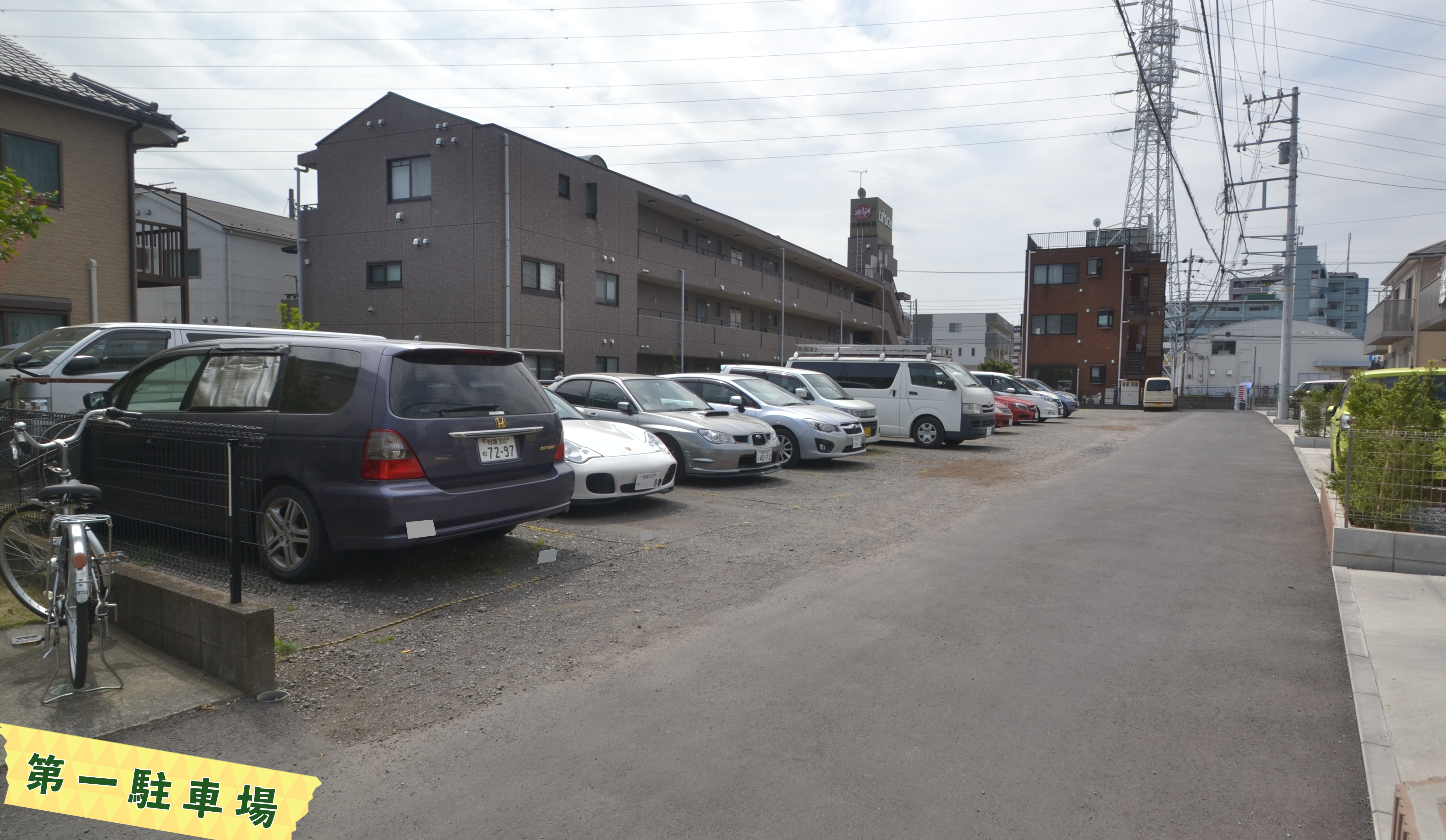 駐車場の内訳といたしましては普通車が13台・軽自動車3台・コインパーキング6台・バイクが8台駐輪・駐車可能な複合式駐車場になっております。