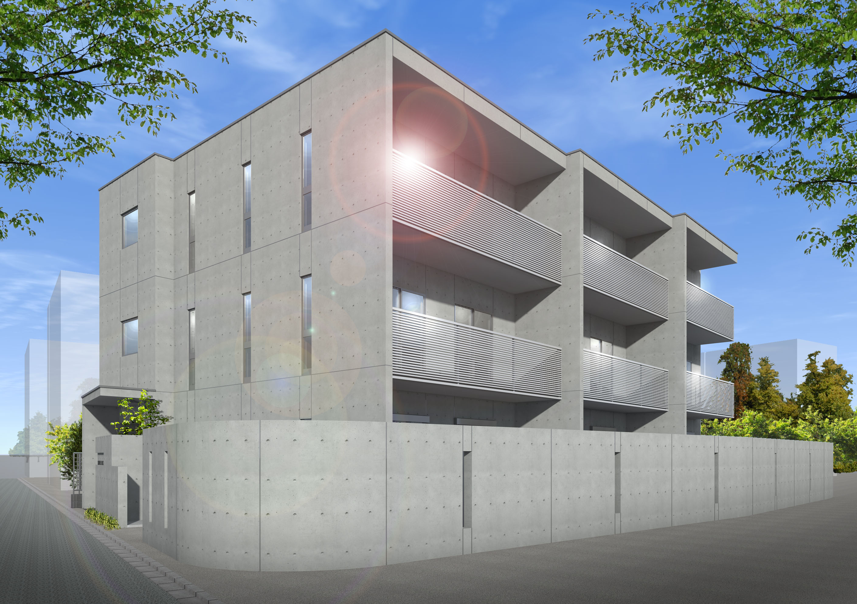物件の外観(コンクリート打ち放し)、内装、設備等の選定にあたり、 オーナー様のセンスがとにかく素晴らしく、 左記のイメージパースの通り、非常にカッコ良く、お洒落なマンションとなっております。